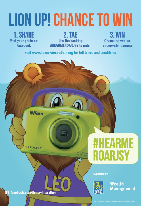 Thanks to everyone who came down to see us in St Helier in January and February and had their photo taken for our Lion Up! competition. Everyone who has uploaded their photo is in with a chance of winning a Nikon Coolpix underwater camera! If you haven’t uploaded your photo yet there’s still time - simply share it on our Facebook page www.Facebook.com/lionsswimarathon using the hashtag #hearmeroarjsy